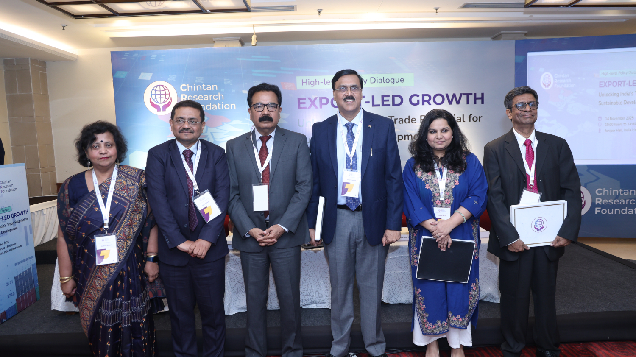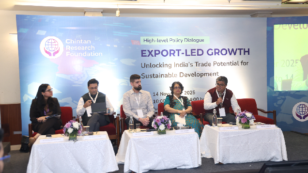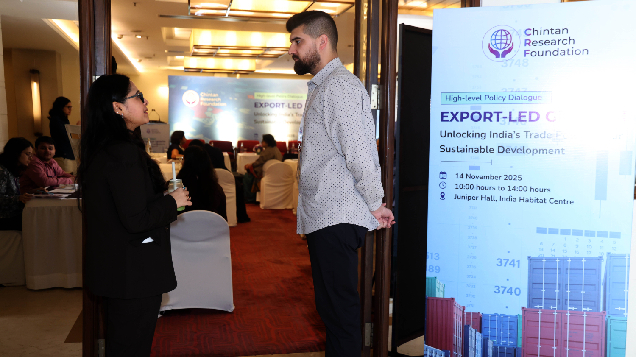 The event “Export-Led Growth: Unlocking India’s Trade Potential for Sustainable Development”, organised by the Chintan Research Foundation on 14th of November 2025 in India Habitat Centre, New Delhi, will bring together policymakers, industry leaders, and researchers to discuss strategies for enhancing India’s export competitiveness. It will feature keynote and panel discussions on sectoral strengths, trade policy reforms, sustainability, and global value chain integration. The goal is to identify actionable measures to boost exports, promote innovation, and ensure environmentally and socially responsible growth, while strengthening collaboration between government, academia, and industry for sustainable trade-led development.