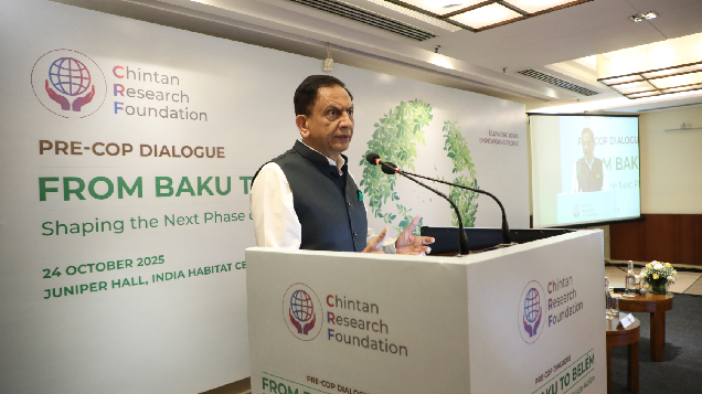 The Pre-COP Dialogue, organised by Chintan Research Foundation on October 24, 2025, at India Habitat Centre, New Delhi, convened leading climate experts and policymakers to discuss advancing global climate action ahead of COP 30 in Belém, Brazil. The event focused on evaluating progress since the Paris Agreement, identifying gaps in climate governance, and setting expectations for UNFCCC action. Key topics included climate finance, adaptation, technological innovation, and the need for equitable, inclusive, and accountable climate policyemphasising stronger roles for civil society and private sector involvement in shaping effective solutions.