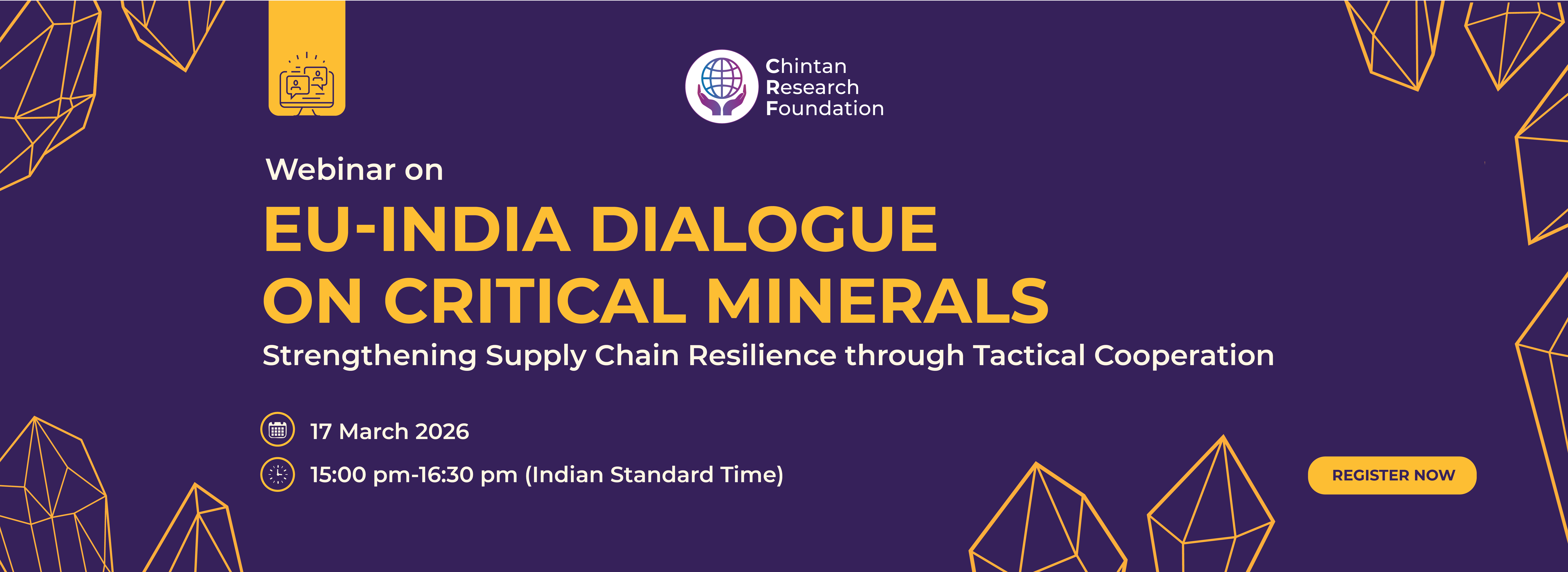 CRF is organising a webinar titled "EU-India Dialogue on Critical Minerals: Strengthening Supply Chain Resilience through Tactical Cooperation". Bringing together a distinguished group of experts from Europe and India, the webinar will connect India’s National Critical Minerals Mission (NCMM) with the European Union’s evolving economic security and supply-chain resilience agenda, with the explicit goal of identifying practical, near-term cooperation pathways.