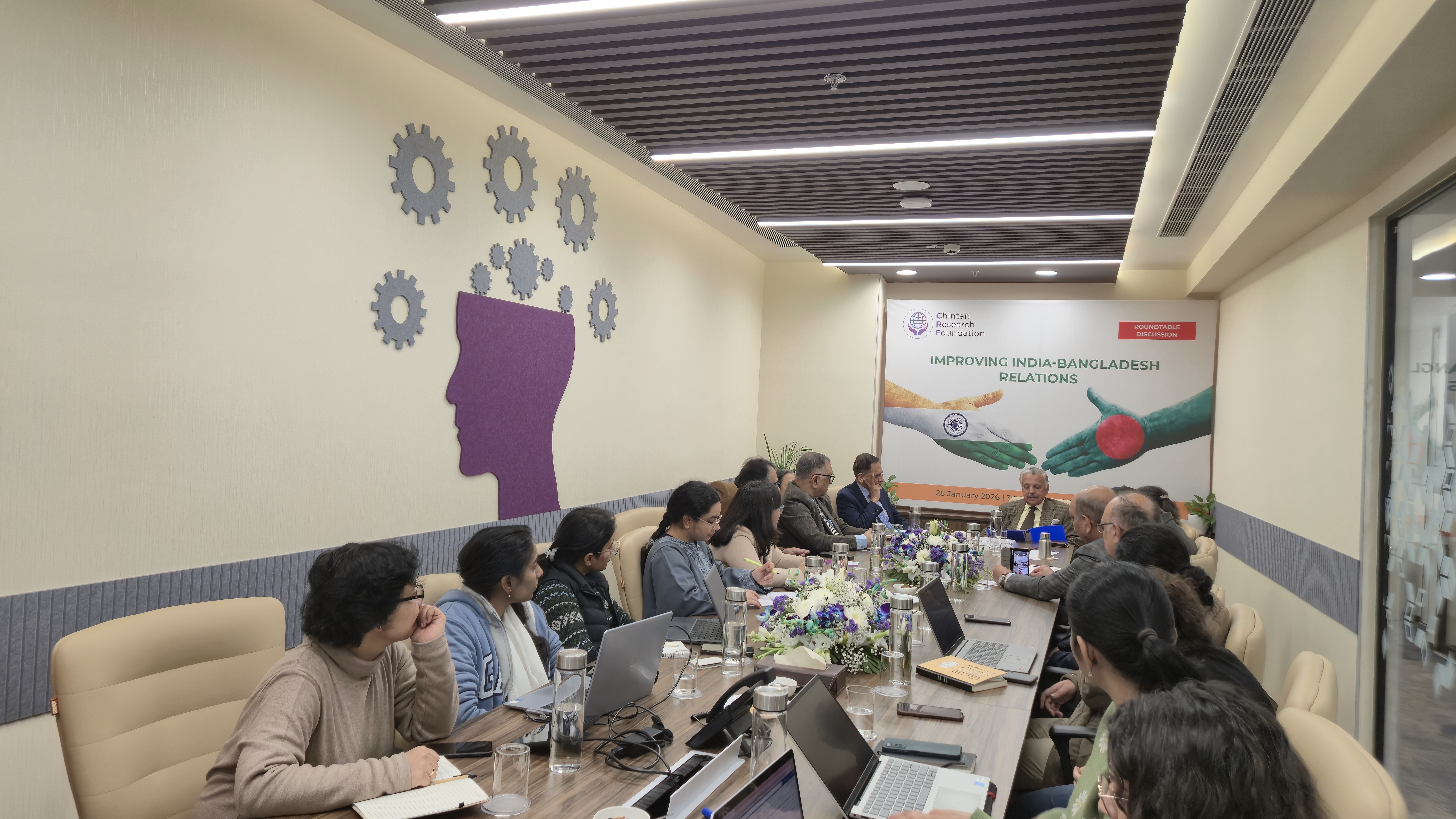In the wake of Bangladesh’s political, economic, and social transition following the 2024 mass uprising and the establishment of an interim caretaker government, the Chintan Research Foundation (CRF) convened a roundtable discussion titled “Improving India–Bangladesh Relations” on 28 January 2026. The discussion brought together scholars, policymakers, practitioners, and members of India’s strategic community to examine pathways for strengthening bilateral ties amid evolving domestic and regional dynamics. The roundtable featured an expert address by Lt Gen Kamal Davar, alongside contributions from Ambassador Pinak Ranjan Chakravarty and Ambassador Riva Ganguly Das, former Indian High Commissioners to Bangladesh. Additional insights were offered by leading experts on the subject, including Prof. Sreeradha Datta, Prof. Sanjay K. Bhardwaj, Mr. Shantanu Mukarji, and Col. Jasbir Singh. The deliberations focused on practical recommendations to enhance bilateral cooperation in 2026, emphasising sustained engagement, sensitivity to Bangladesh’s internal dynamics, and a forward-looking, multidimensional approach.