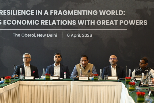 Titled “Resilience in a Fragmenting World: India’s Economic Relations with Great Powers,” the roundtable brought together senior representatives from government, industry, and civil society for a candid and forward-looking exchange. Discussions centred on India’s evolving economic relationships with the United States and China, as well as the broader implications of shifts in global trade governance.