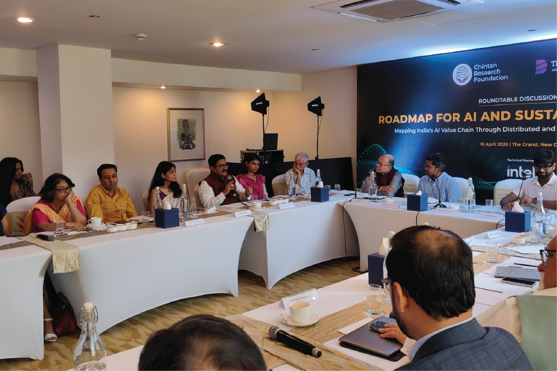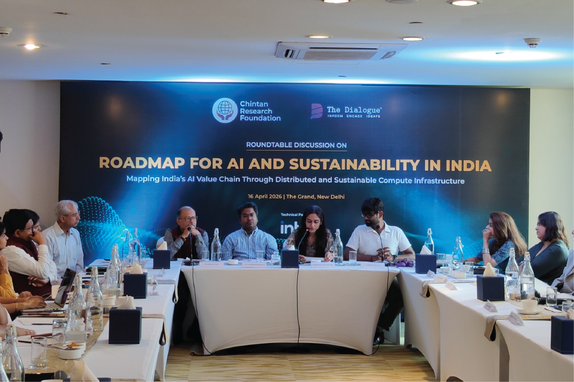 In this context, the Chintan Research Foundation and The Dialogue jointly organised a roundtable discussion with the aim of designing a sustainable AI infrastructure roadmap for India by advancing compute architectures, setting environmental benchmarks, and aligning policy frameworks across the AI value chain. The session brought together senior stakeholders from government, industry, academia, and policy research institutions to move the conversation forward on how India can design an AI infrastructure model that is distributed, energy-conscious, resilient, and inclusive.