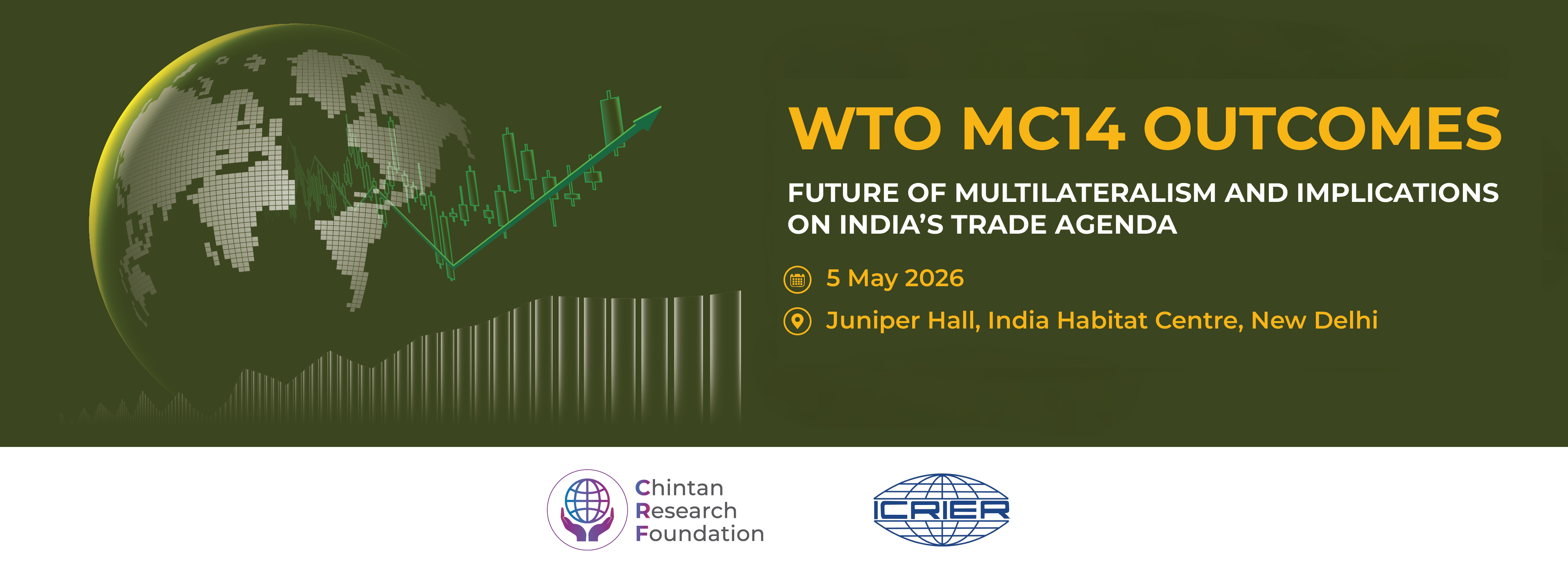 WTO MC14 Outcomes: Future of Multilateralism and Implications on India’s Trade Agenda”, jointly organised by Chintan Research Foundation (CRF) and Indian Council for Research on International Economic Relations (ICRIER) is a seminar is scheduled on 5th May 2026, 10:00 AM-1:00 PM (IST) at Juniper Hall, India Habitat Centre, New Delhi.